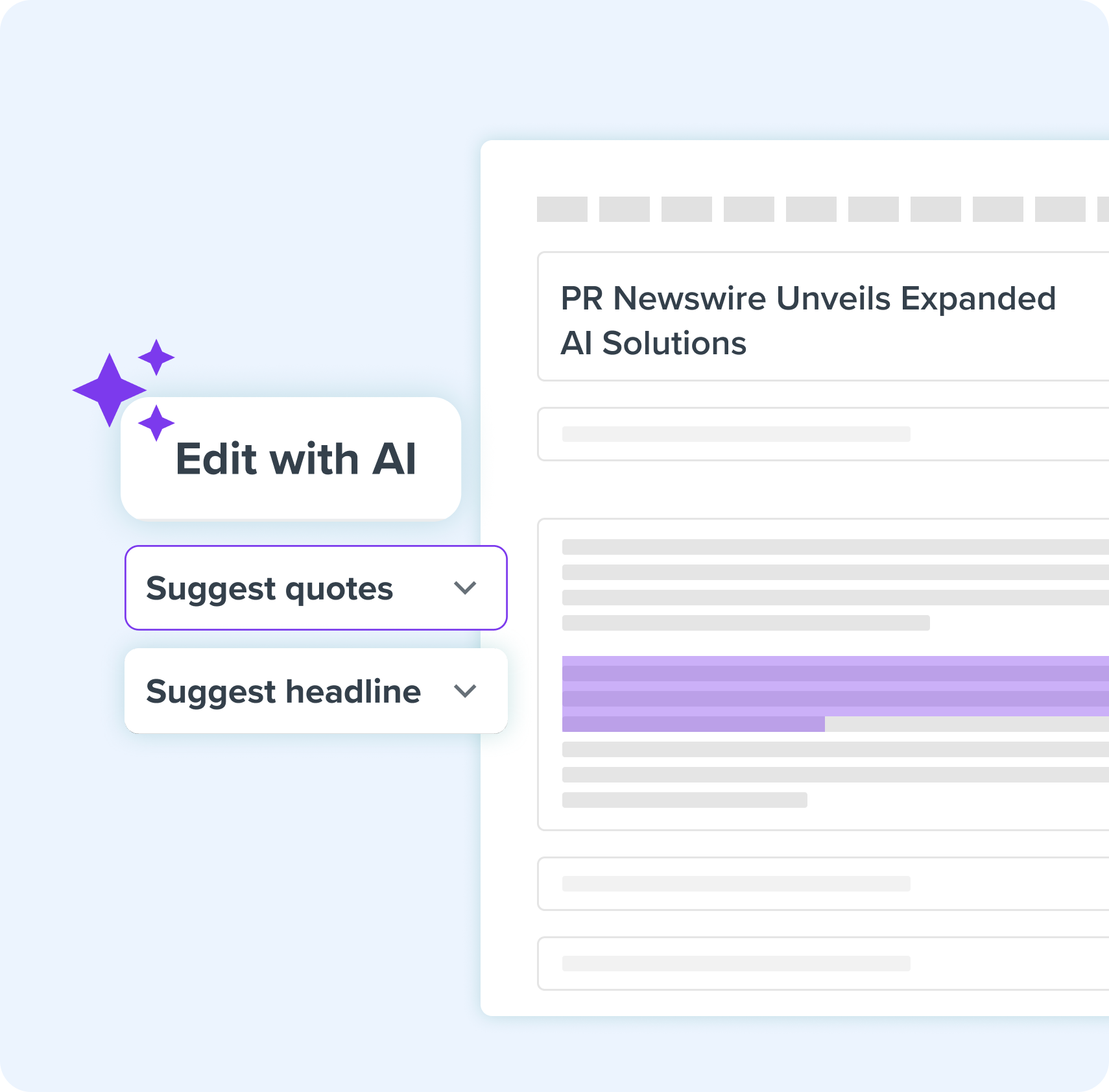PR Newswire AI is a powerful suite of generative AI tools integrated into the Amplify platform. Built specifically for communications professionals, it streamlines the entire PR workflow, from campaign planning and content creation to distribution of press releases. By combining third-party technology (Google Gemini Enterprise) with proprietary models trained on years of press release performance data and editorial best practices, our AI helps brands quickly and easily craft high-quality, results-driven content that effectively tells your brand’s story.